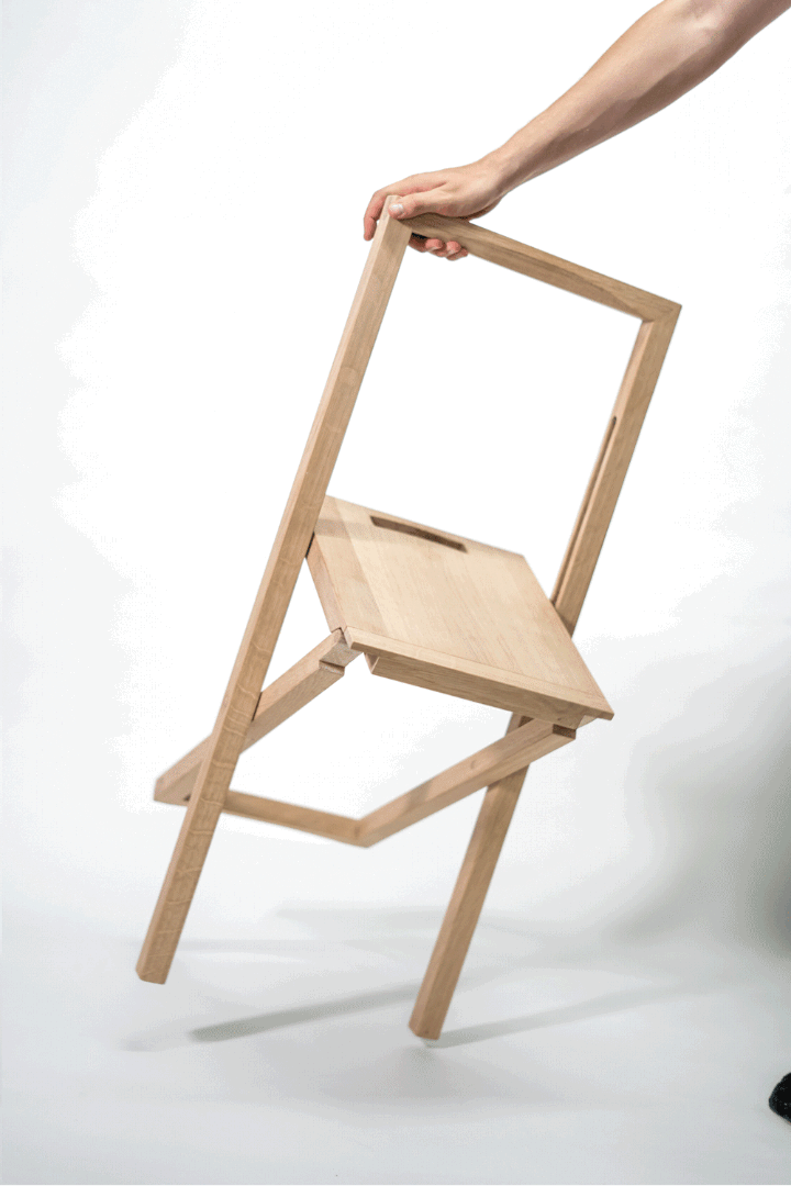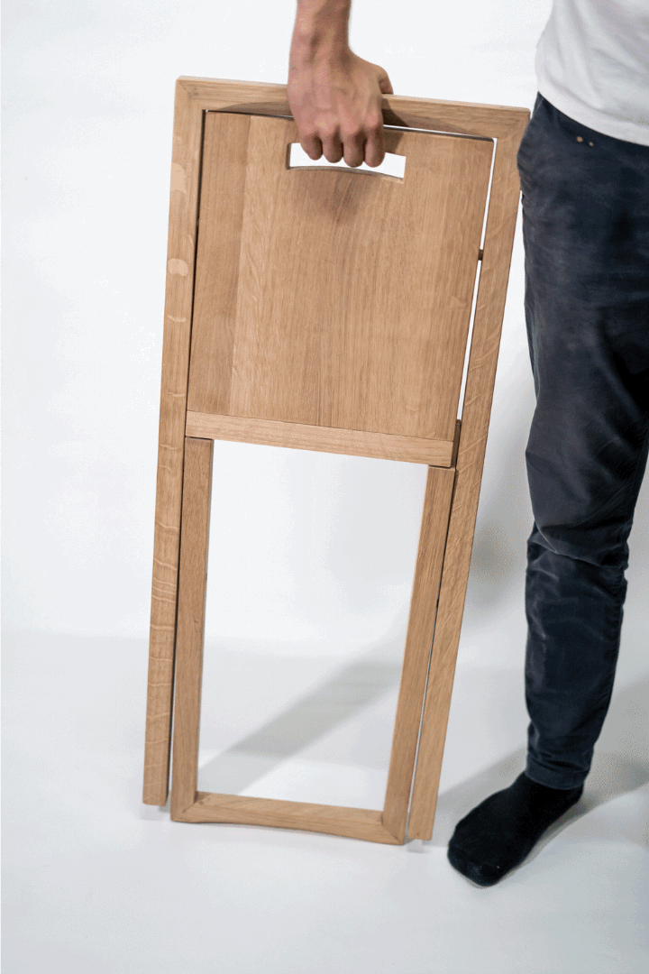 Kaum ein Klappstuhl ist darauf ausgelegt, mit einer Hand gefaltet zu werden. Um diese Idee bestmöglich umzusetzen, entstand der Klappstuhl im konstanten Dialog zwischen dem Kurs, Handwerker*innen und der Regionale.